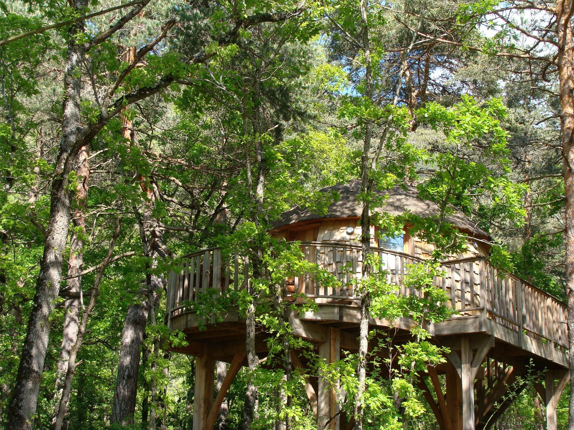 2 Cabanes perchées, une roulotte et un gîte dans les Gorges du Tarn, au milieu des bois.