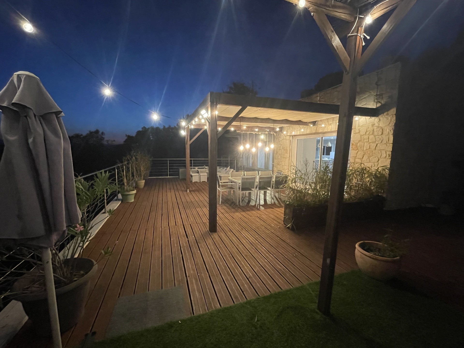 La villa dispose d’une terrasse avec vue panoramique de 100 m2 avec table pour le repas et salon de jardin. Une plancha professionnelle est mise à disposition.