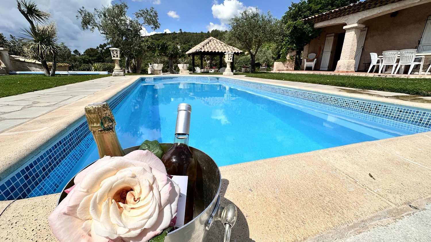 Villa logement entier plein SUD ,à 800 mètres du village de CABASSE dans la VAR 83340 ,idéale pour 6/à 7pers proche de la boulangerie épicerie .La piscine privée réservée exclusivement aux locataires ,terrain de 1850 m²tout clôturé comprenant 3 chambres équipés 1 lit 140 ,l autre 160 et 2 lits en 90 ,lit ,2 salles de bain un grand bain,2 vasques,un bidet (douche à l italienne,2 toilettes séparés .cuisine toute équipée,frigo américain lave vaisselle micro onde,expresso et cafetière à filtre four,plaque de cuisson ,un garage ,lave linge,sèche linge,salle a manger,salon