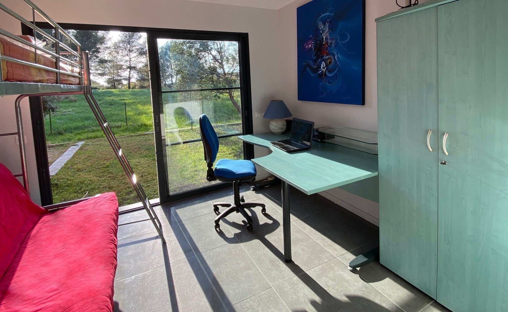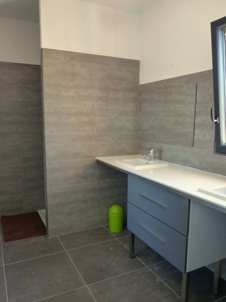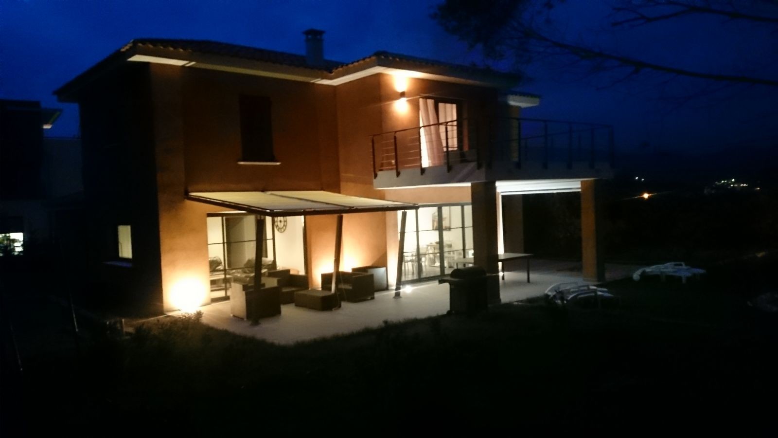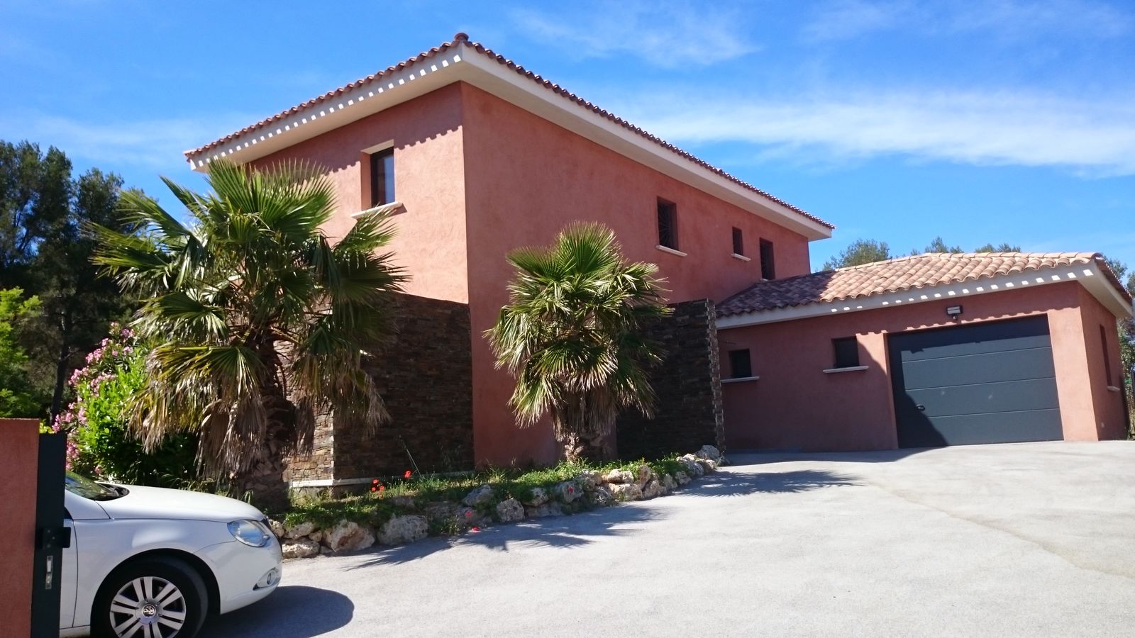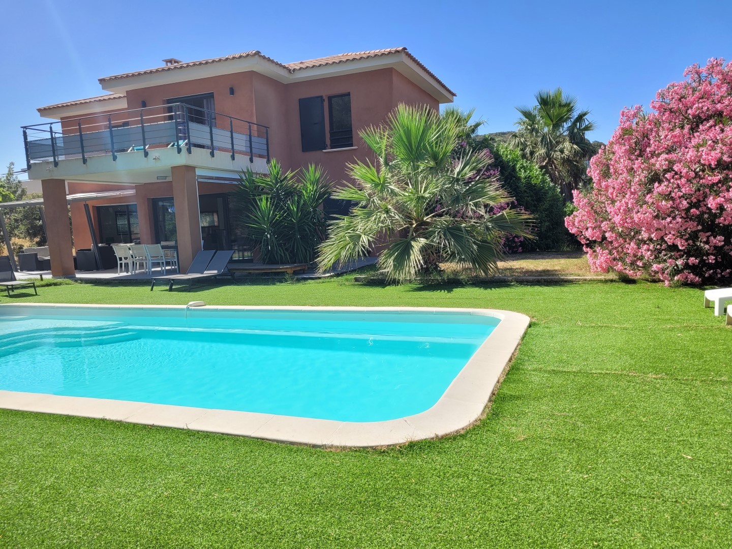 la villa est neuve sur terrain de 900 m² avec 4 chambre en REZ DE JARDIN, et cuisine-repas donnant directement sur les terrasses et piscine