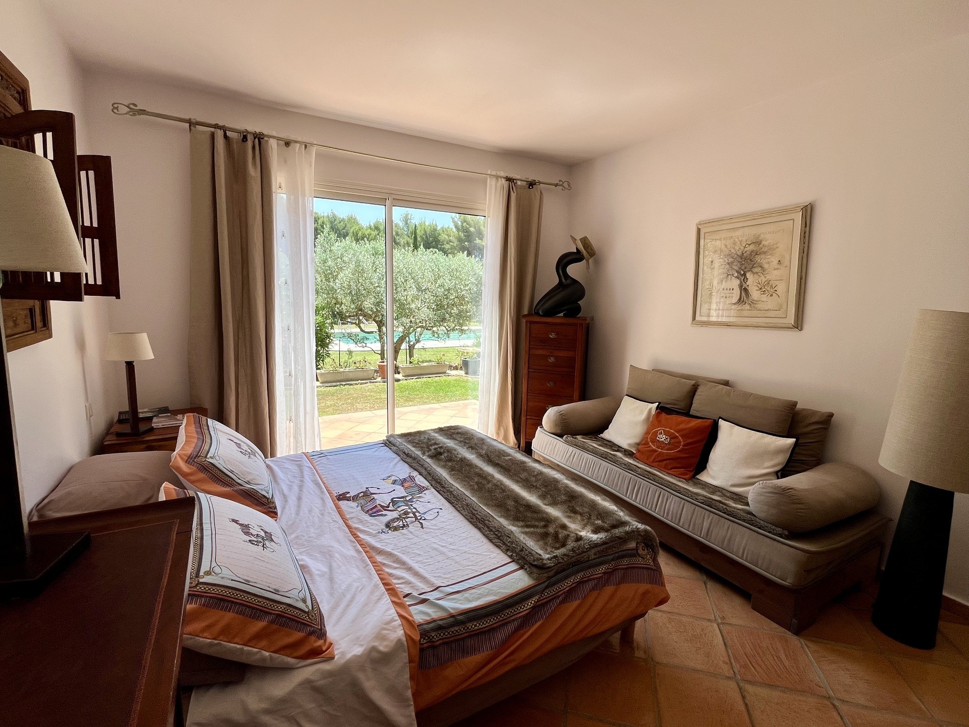 Au coeur d'une oliveraie provençale...une cinquantaine d'oliviers centenaires sur la propriété.... dans une zone boisée....entourée de vignobles... au pieds de la colline...Au calme absolu,aucune nuisance, baignée de soleil, ses 170m2 habitables vous offrent une luminosité exceptionnelle et un grand confort. Prestations haut de gamme : Piano à queue de marque Gaveau, terre cuite manuelle ciree, internet wifi haut debit,telephonie france illimité, orange box tv...table extérieure en zellige, salon de jardin, transats, table ping pong, petanque, badminton, portique enfants.