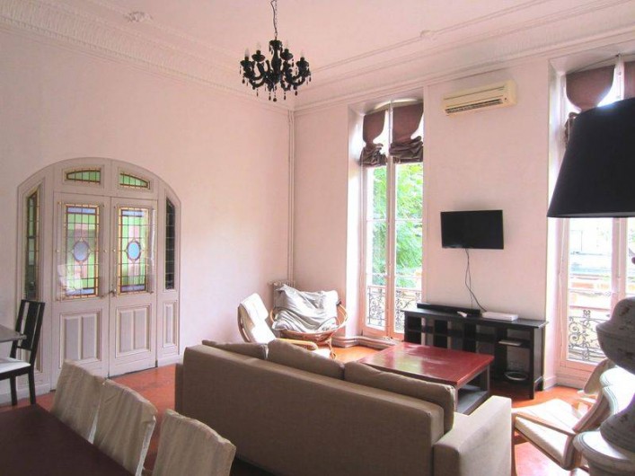Dans le centre classique de Marseille : 10, rue Dieudé, 6ème arrondissement (Quartier Préfecture) : bel appartement bourgeois (hauts plafonds moulurés, cheminées, vitrail, sols tomettes) lumineux, calme et confortable, équipé pour 10 personnes, à partir duquel vous n’aurez pas besoin de voiture.