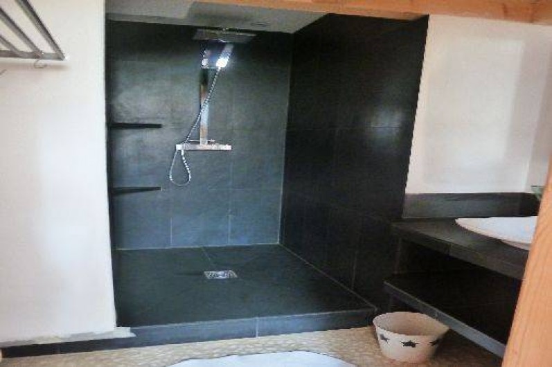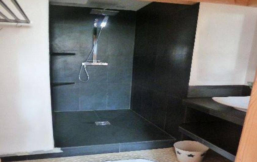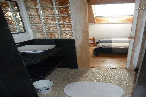 Belles prestations et confort parquet en chêne et ardoise naturelle au sol Pierre de Bourgogne ardoise et galets pour les salle de bains .coin cuisine bien pensé électroménagers neufs .
