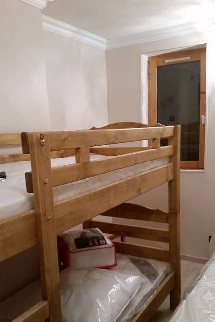 1ere chambre un lit double 140*190 avec douche et lavabo 2eme chambre 1 lit double 140*190 3eme chambre 1lit double 140*190 et 3 lits simples et dans le sejour un canape lit 140*190 malgre tout ces couchages, sauf sur un accord commun. il y a 2 wc sépapé et une salle de bain individuelle l'autre est integrée à la chambte une grande pièce de vie et une entrée une télévision générale et une télévision dans chaque chambre.