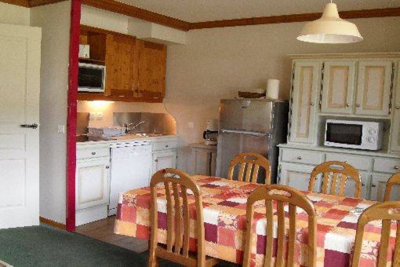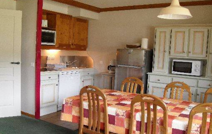 comprenent : 1 séjour avec coin salon et kitchinette total 16 m2 avec 1 canapé lit de 90, 1 clic clac de 140, 1 frigo avec case congélateur, 1 téléviseur et nécéssaires de cuisine : four micro onde, four ordianire, plaque induction, lave vaisselles.......