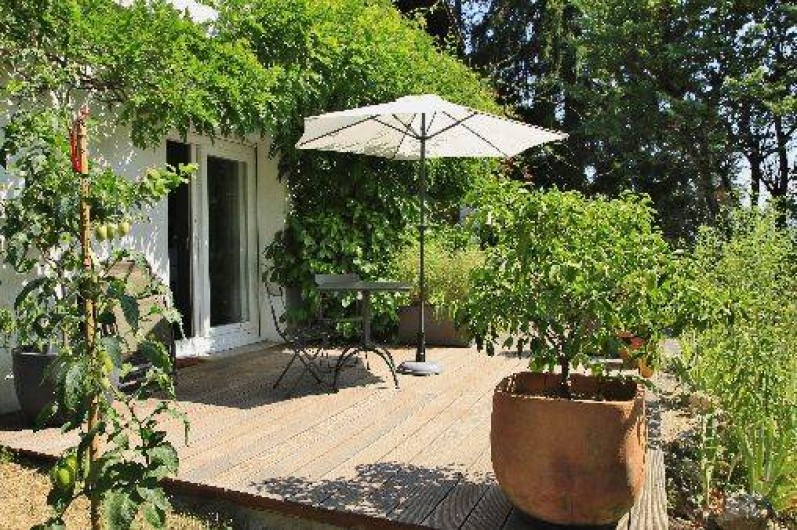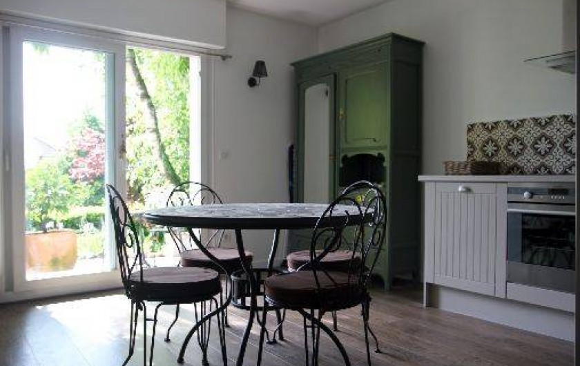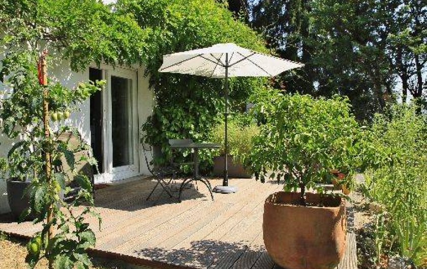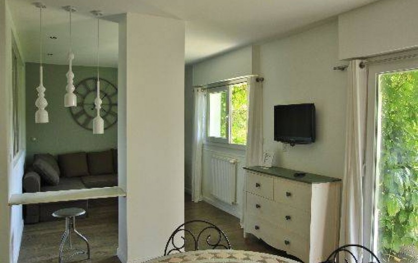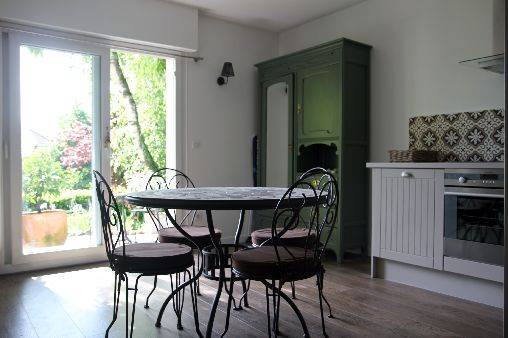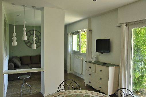 Joli meublé, entièrement neuf. Beaucoup de charme. De plain pied, terrasse privative et parking. Exposition ouest.