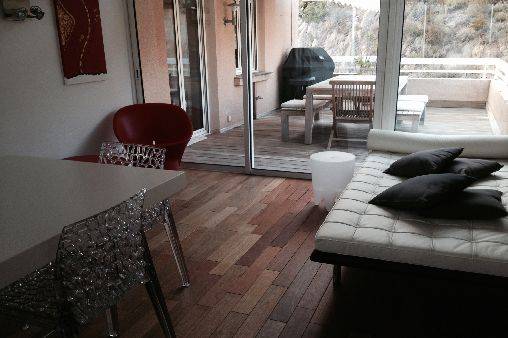 Comme un bateau, entièrement en parquet massif , terrasses en deck ipé, équipées: 2 terrasses sur la mer équipées de transats, plein sud, pose café et déjeuner, 1 terrasse coté est avec accès direct depuis la cuisine et l'espace repas équipée d'un barbecue Weber, salon repas en teck et protection solaire, 1 terrasse panoramique solarium en accès direct depuis la chambre parentale, équipée d'un lit à baldaquin d'extérieur pour des nuits à la belle étoile.