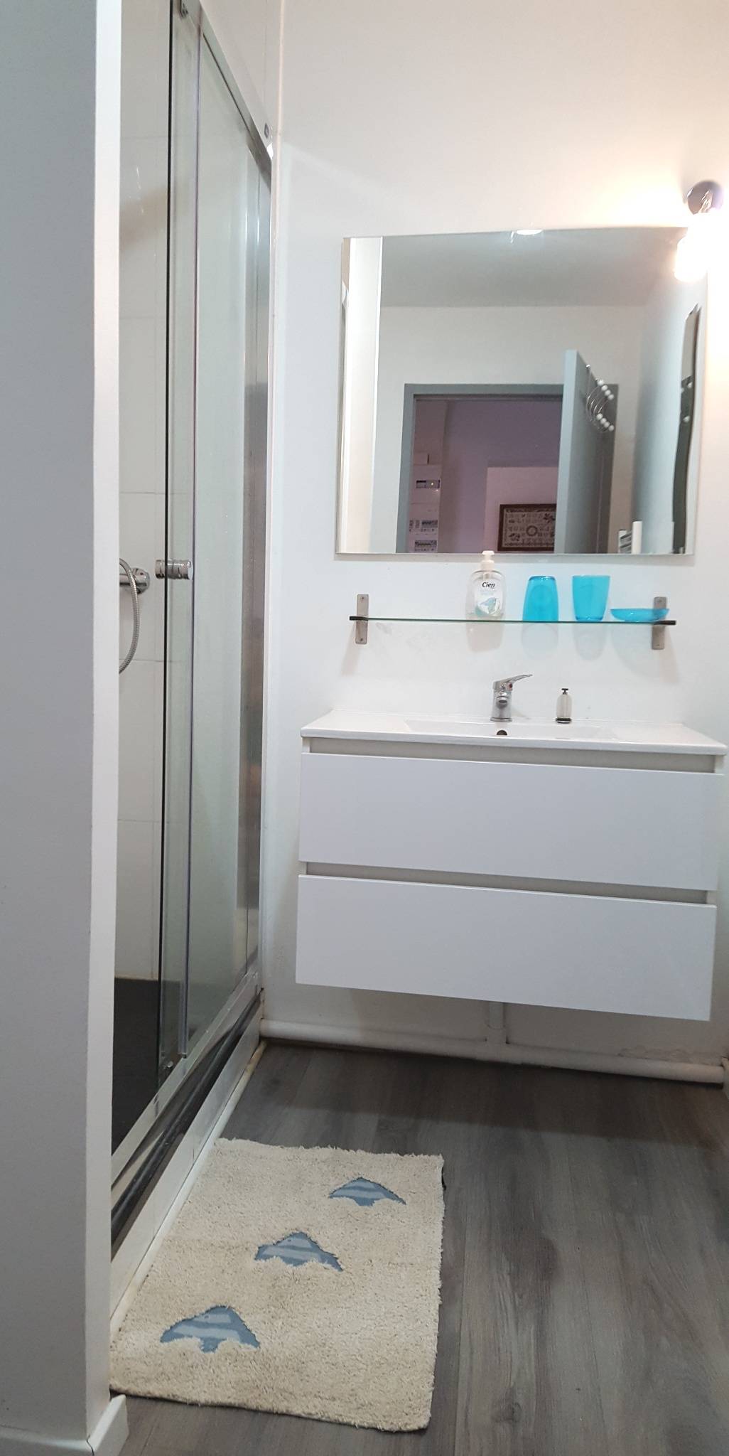 -Salle de bain: douche italienne, meuble vasque 2 tiroirs avec sèche