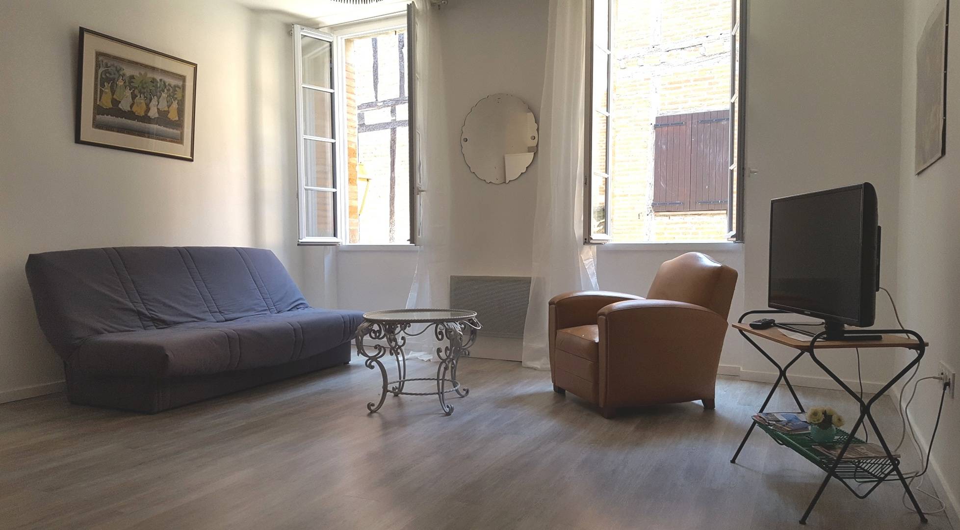 Au pied de la cathédrale, secteur sauvegardé Unesco, rue typique période médievale,très calme, le gîte du Castelnau est un petit immeuble composé de deux appartements de 65m2 identiques, seule la déco est différente