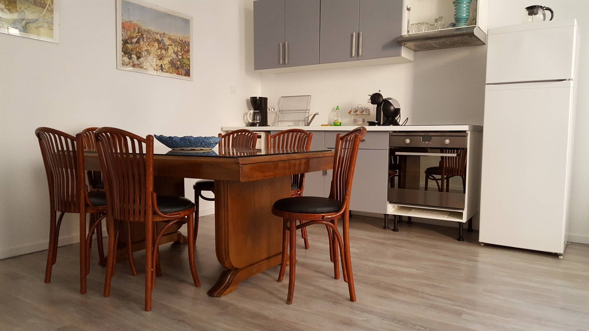 -cuisine équipée: four électrique, plaque induction, hotte, micro onde, frigo/congélateur...