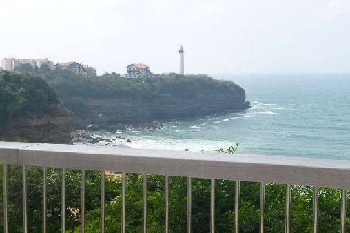 Aperçu océan phare de Biarritz et montagnes de la Rhune depuis la loggia, exposition Sud Ouest. Parking facile. Accès piscine direct. Plage Chambre d'Amour 10mn à pied et marche possible en front de mer sur 6 kms, golf de Biarritz à coté de la résidence, proche centre ville Biarritz et quartier 5 cantons Anglet.