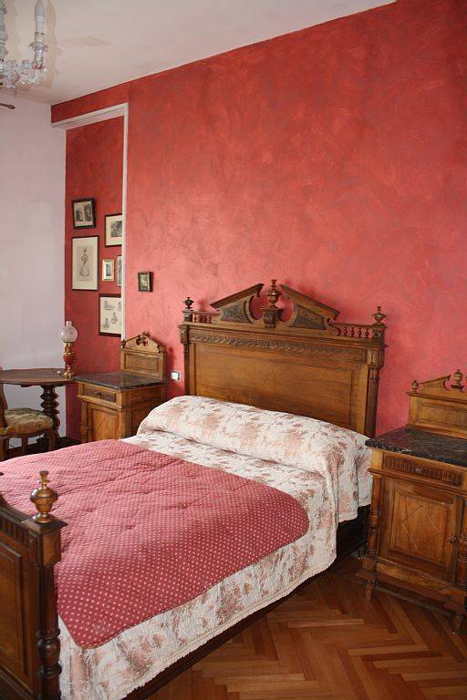 La chambre rouge et la verte ont des lits doubles, la chambre bleue un lit simple max pour adoléscent(1,80 m).