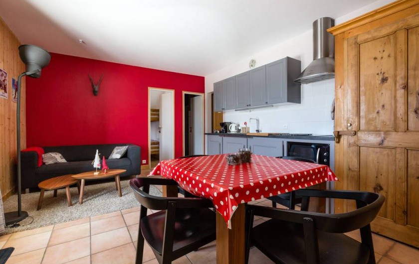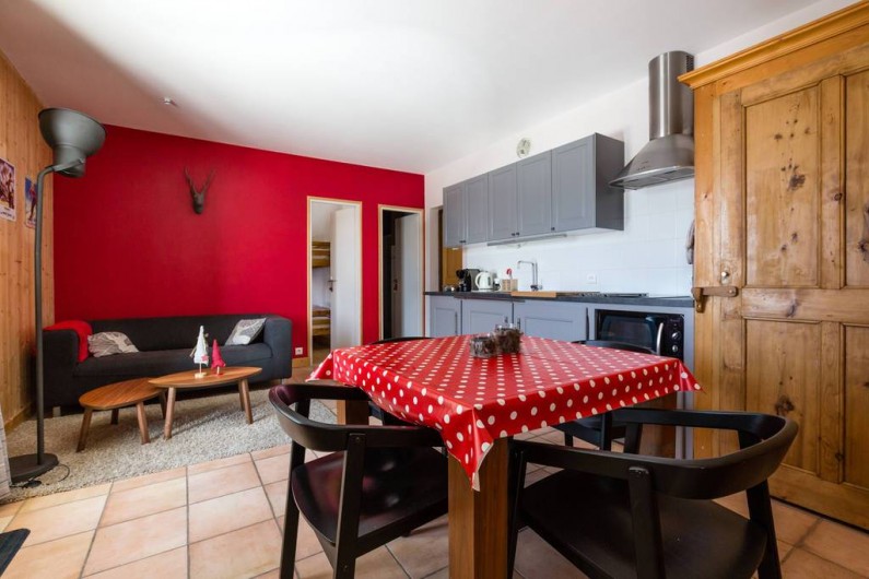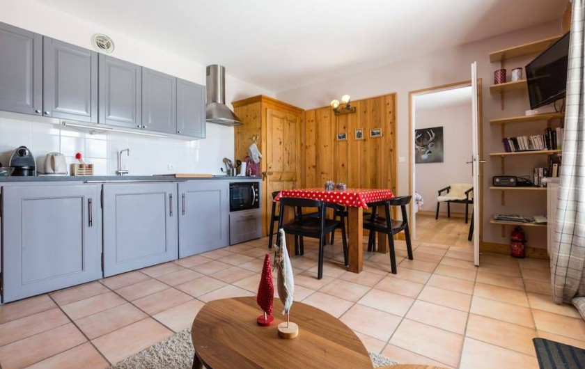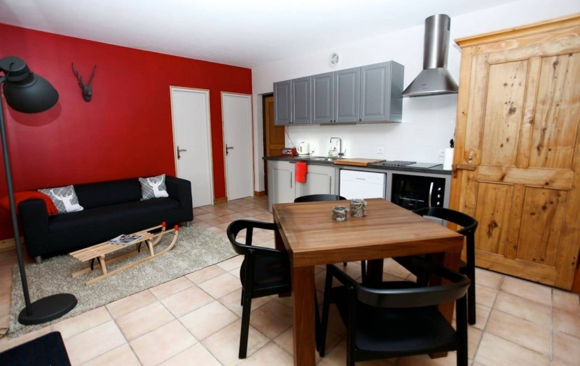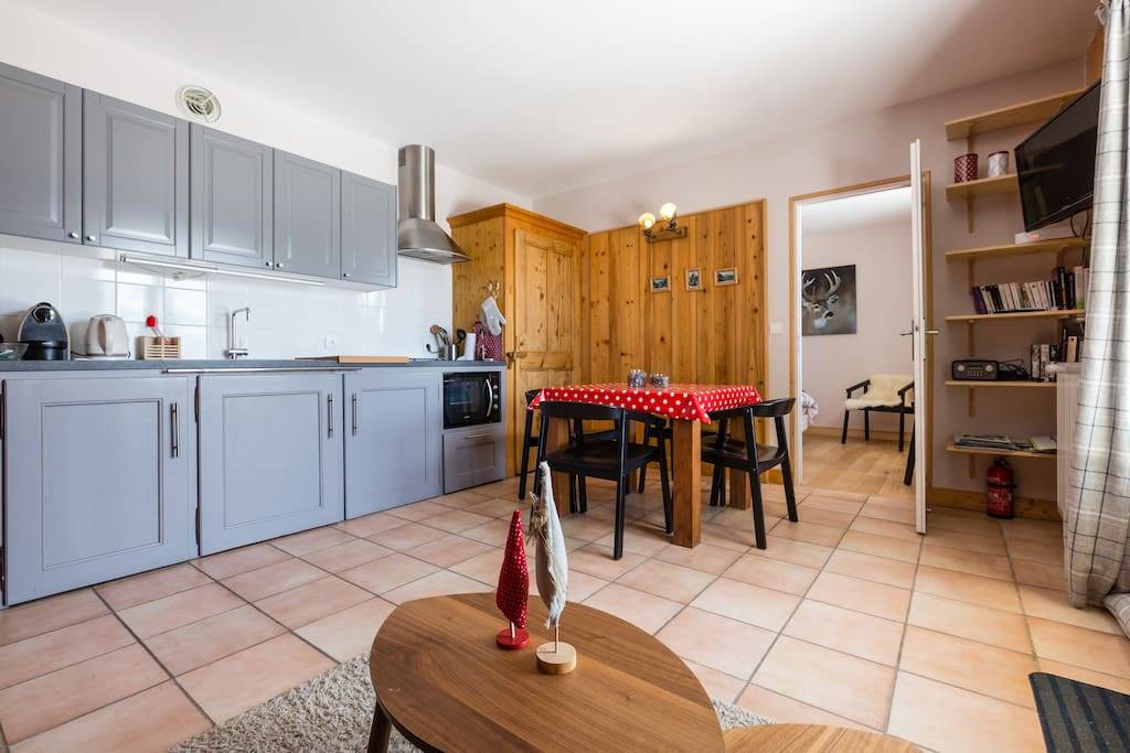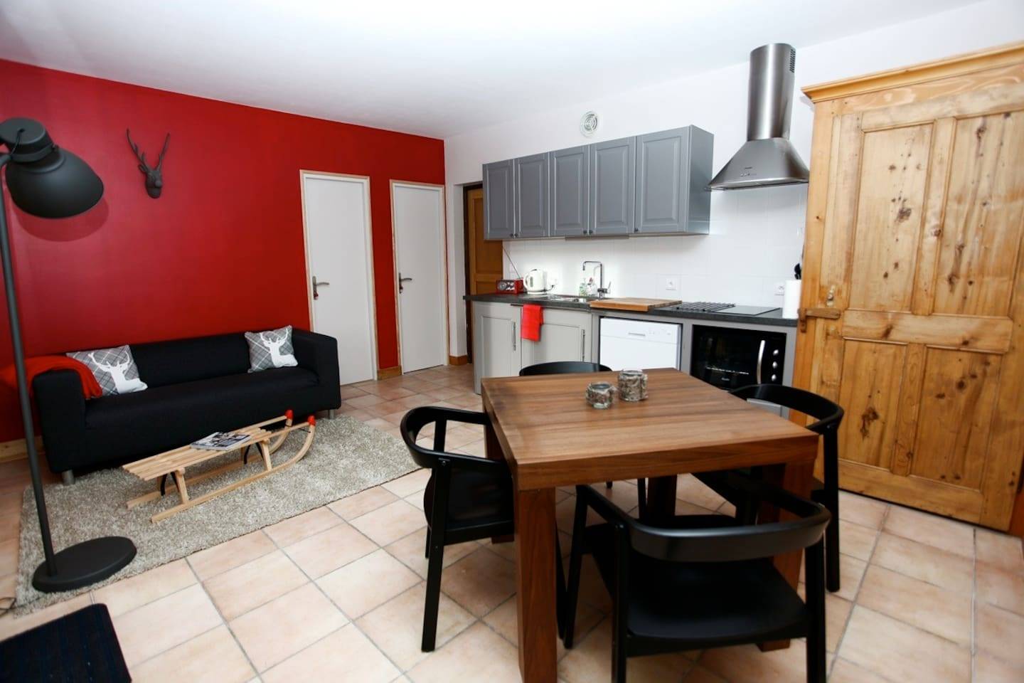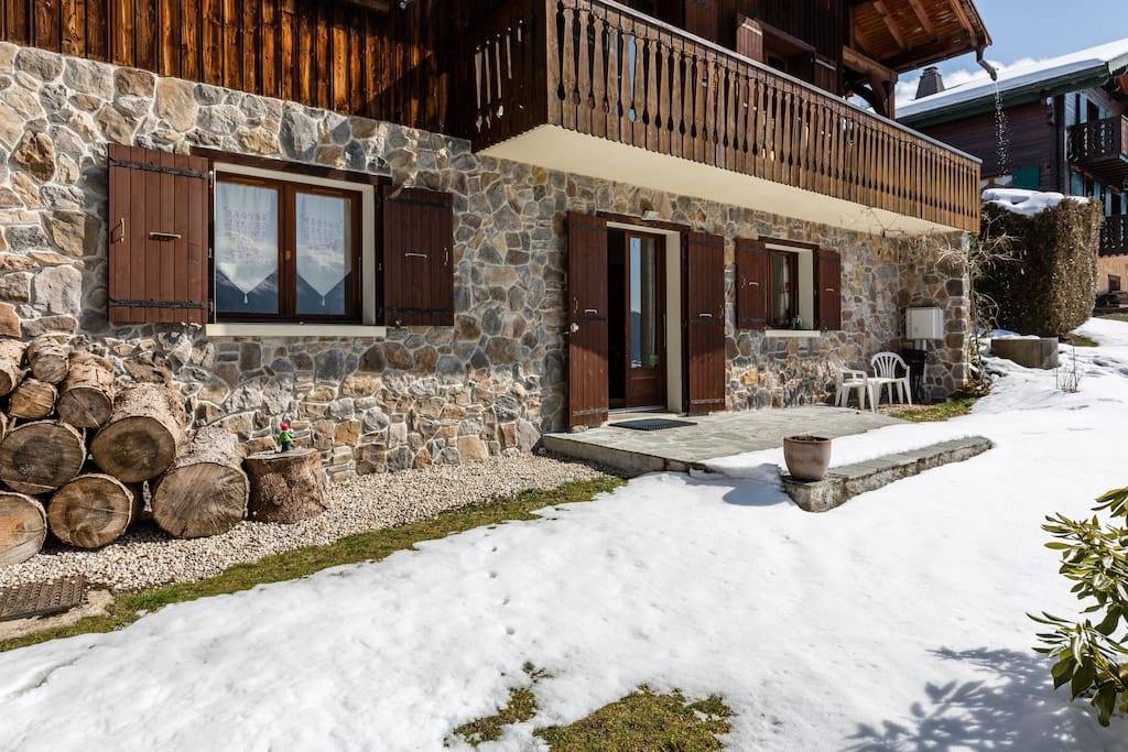 Très bel appartement entièrement rénové, au rez-de-chaussée d'un chalet individuel situé à 1100 mètres d'altitude, au dessus du village d'Arâches La Frasse avec une magnifique vue panoramique sur le massif des Aravis.