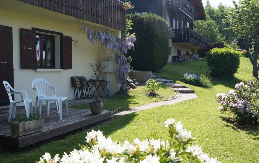 L'été vous aurez accès à un magnifique jardin fleuri et une terrasse. Il y a une table à manger et un parasol à disposition.