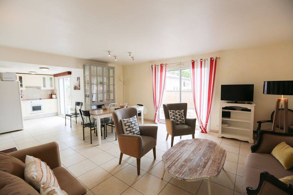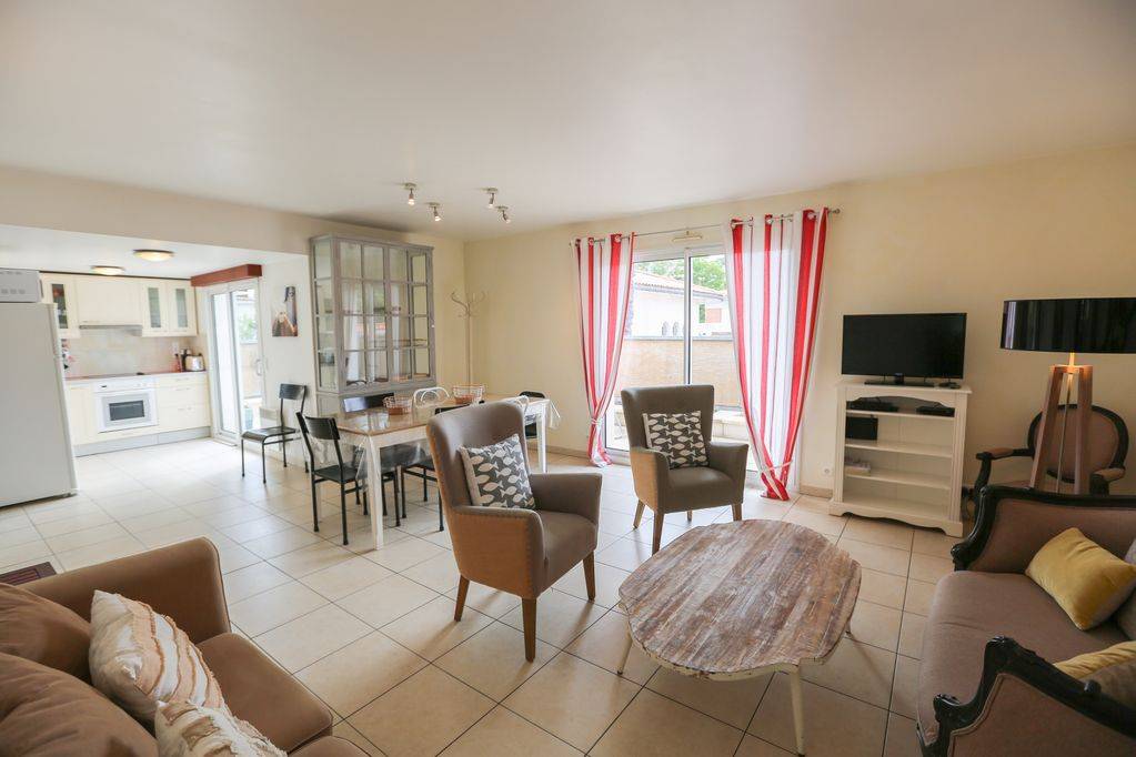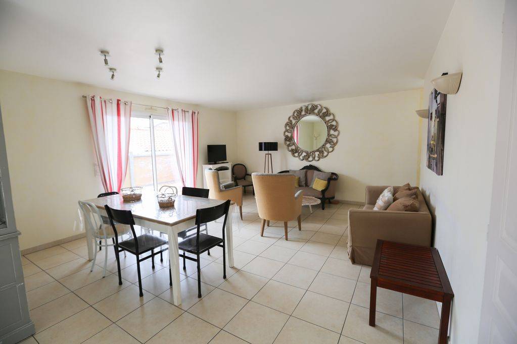 Logement avec 3 chambres et 9 couchages, 2 WC donc 1 séparé avec lave mains, 2 places de parking à l'extérieur. Le Séjour et la cuisine (toute équipée tout confort lave vaisselle et