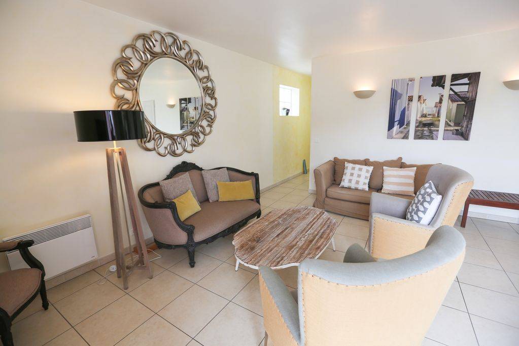 lave linge séchant) donne sur la terrasse plein Sud équipée d'un salon de jardin 8 places et de bains de soleil.