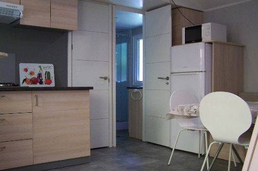 Mobil-homes et Bungalows "plein air" sont récents, aménagés de 2 ou 3 chambres, d'une cuisine-salon, toilette, salle de bain (sauf Bungalow) et d'une terrasse.