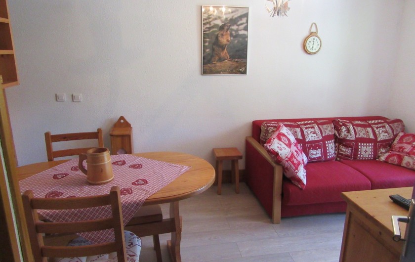Au coeur du village, exposé plein sud, un appartement tout confort, bien équipé pour 4 personnes avec garage fermé au même niveau et balcon avec vue sur la montagne.
