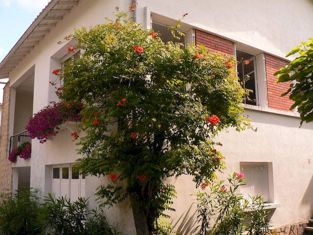 La maison est entourée d’un jardin. L’appartement de 50 m2 est situé au rez-de-chaussée de la maison. Il se compose d’un séjour avec cuisine et de deux chambres (l’une avec un grand lit 2 places, et l’autre avec 2 lits d’une place). Les draps sont fournis. Il peut accueillir 4 personnes (+ un bébé à condition d’apporter son couchage). Il y a une salle de bain avec douche. Les serviettes de toilette sont fournies.