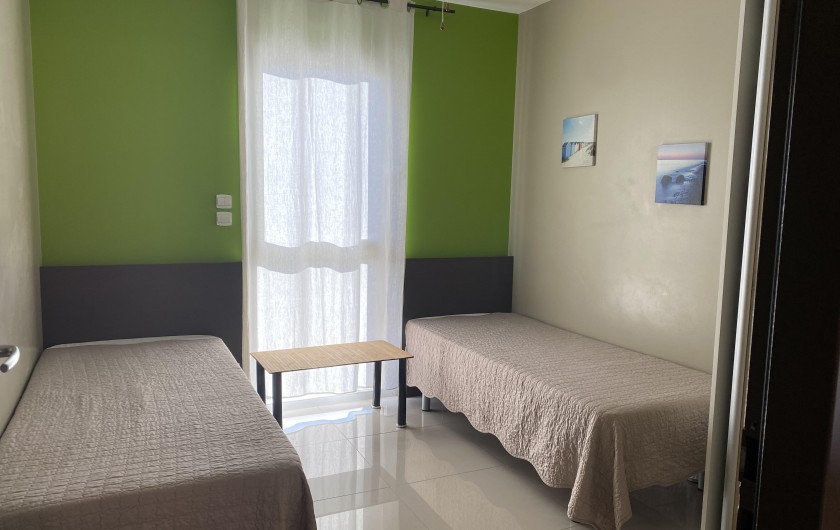 1 chambre avec 1 grand lit 140 et grand placard, 1 chambre avec 2 lits 80 et penderie