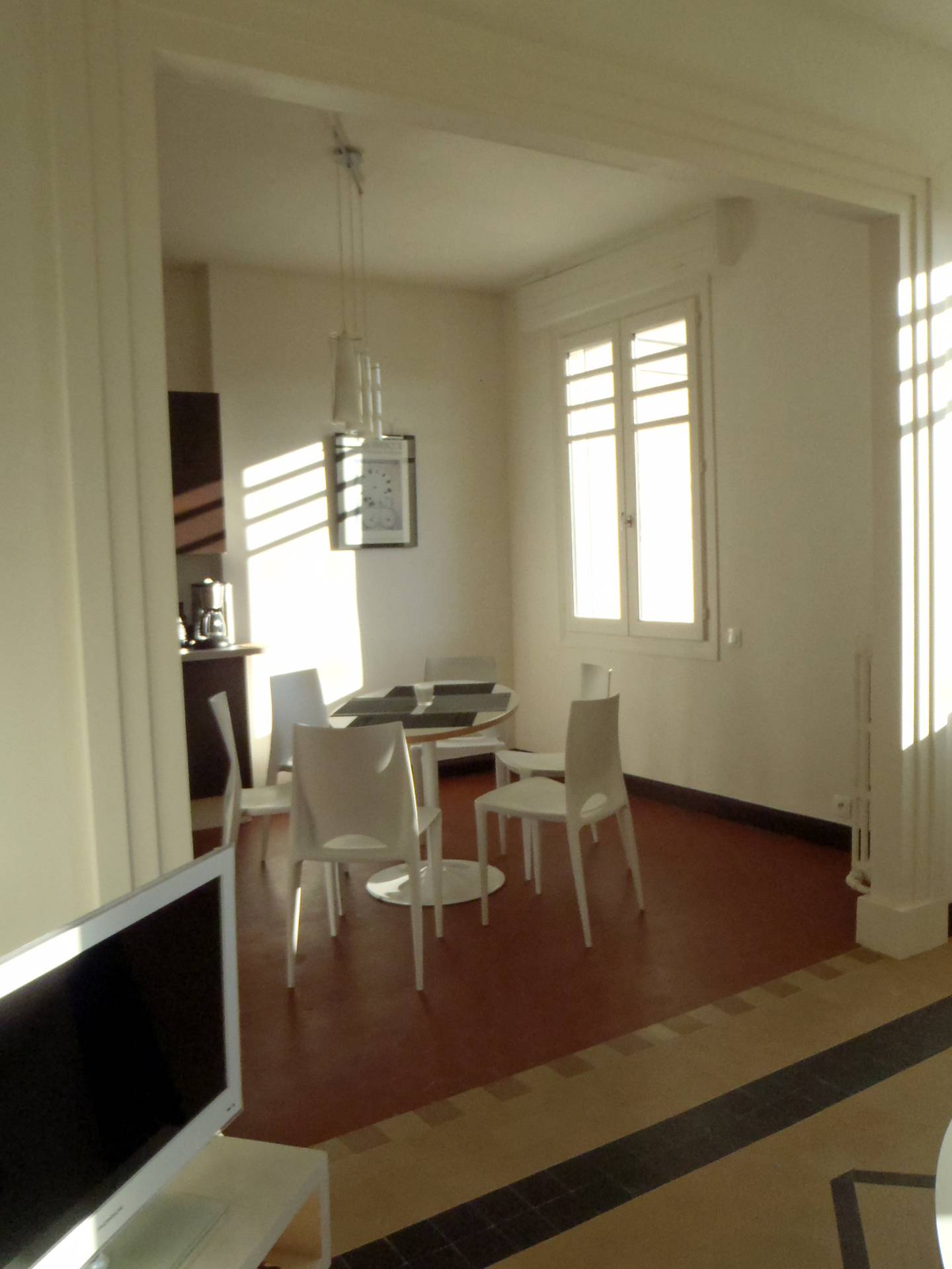 Au 3 ère et dernier étage d'un immeuble de caractère fin des années 30 , bel Appartement spacieux, clair et ensoleillé entièrement rénové en 2012 .Ambiance Art Déco. Exposition plein sud avec vue sur la cité des Papes . Décor et mobilier contemporain. Quartier et place au calme, au cœur de la cité Papale. Description : Hall long corridor, Séjour salon avec canapé convertible / Cuisine intégrée et entièrement équipée. 1 Chambre avec 2 lits simples convertibles en lit double KING Size (200 X 200). 1 Chambre avec 1 lit gigogne 2 places (90 X 200), bureau avec dressing donnant … sur une loggia avec vue sur le Palais des Papes. 1 salle de bain/douche. 2 WC indépendants Conditiond de vente : 33 % d’arrhes six mois avant la date d'arrivée. 50 % d’arrhes entre six mois et la date d'arrivée. Solde 30 jours avant le jour d'arrivée. Lire moins Lire la suite