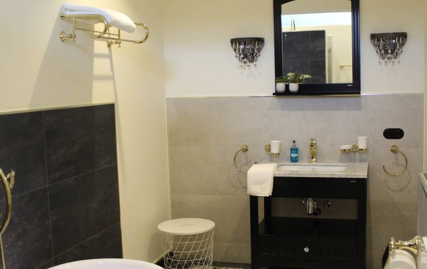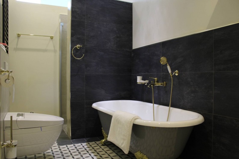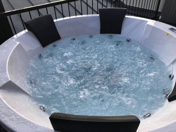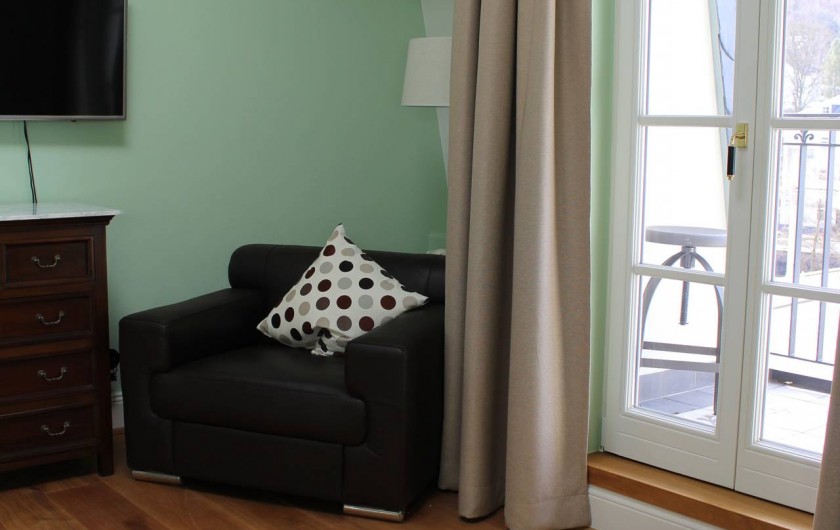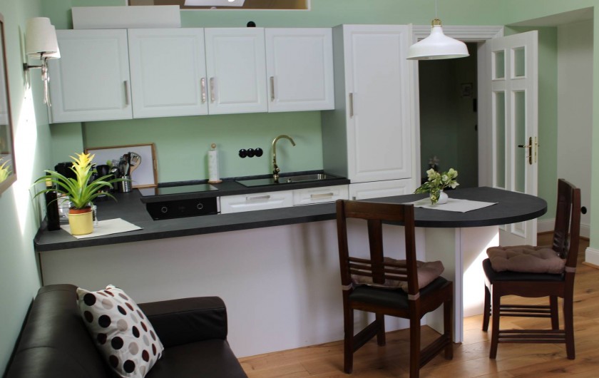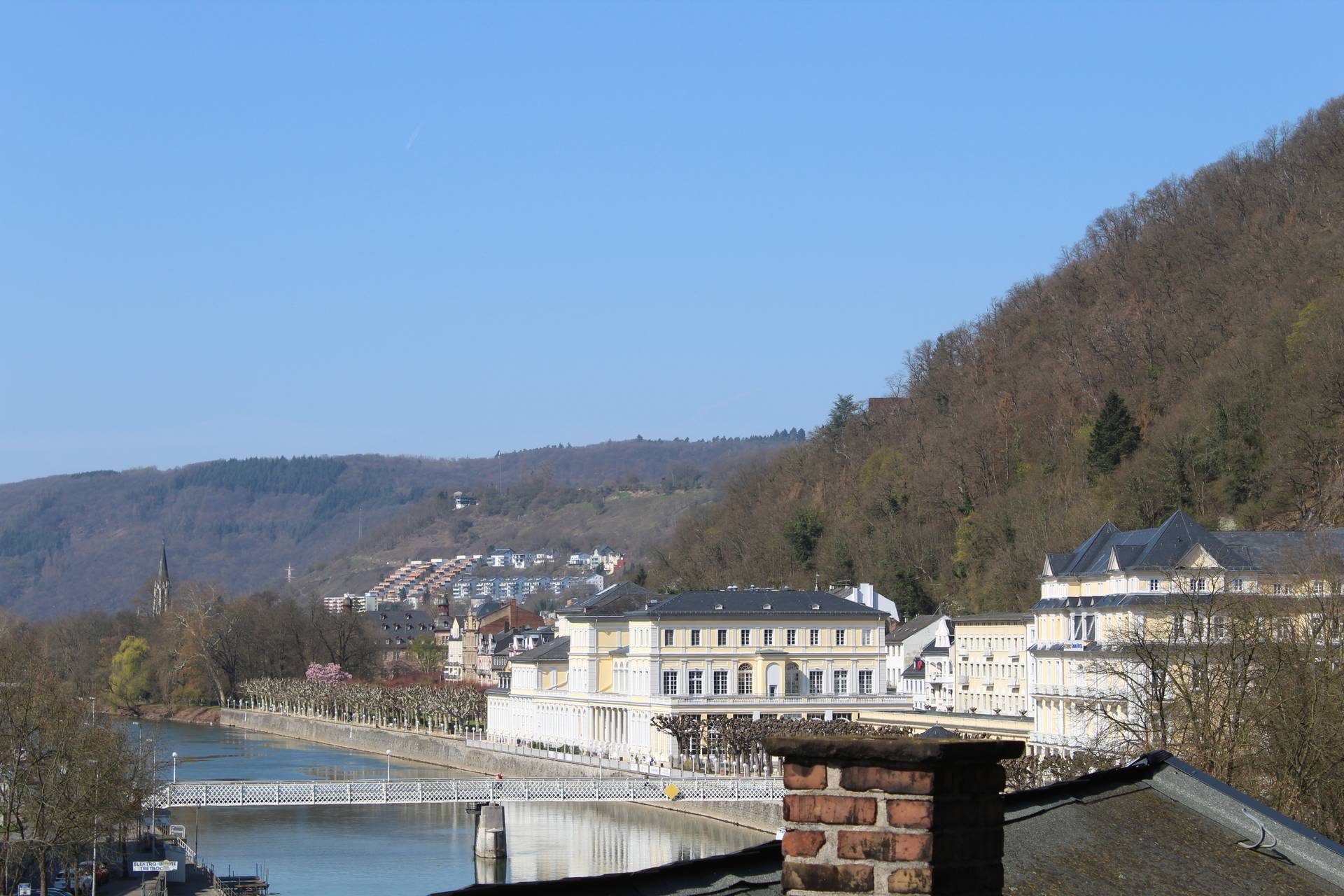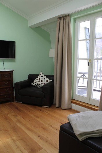 Appartement mansardé luxueusement meublé avec 1 chambre à coucher, salle de bain, séjour avec coin cuisine et loggia donnant sur la rivière et le centre thermal. La chambre à coucher est équipée d'un lit à sommier et d'un linge de lit en coton doux pour la peau. Serviettes, peignoirs et serviettes de bain sont fournis. De la chambre à coucher, il y a un accès exclusif à la terrasse sur le toit en pierre avec jacuzzi, divan à bascule, grill, vue fantastique sur le centre thermal de Bad Ems et sur le massif rocheux de la maison. A côté de l'appartement, vous pouvez réserver