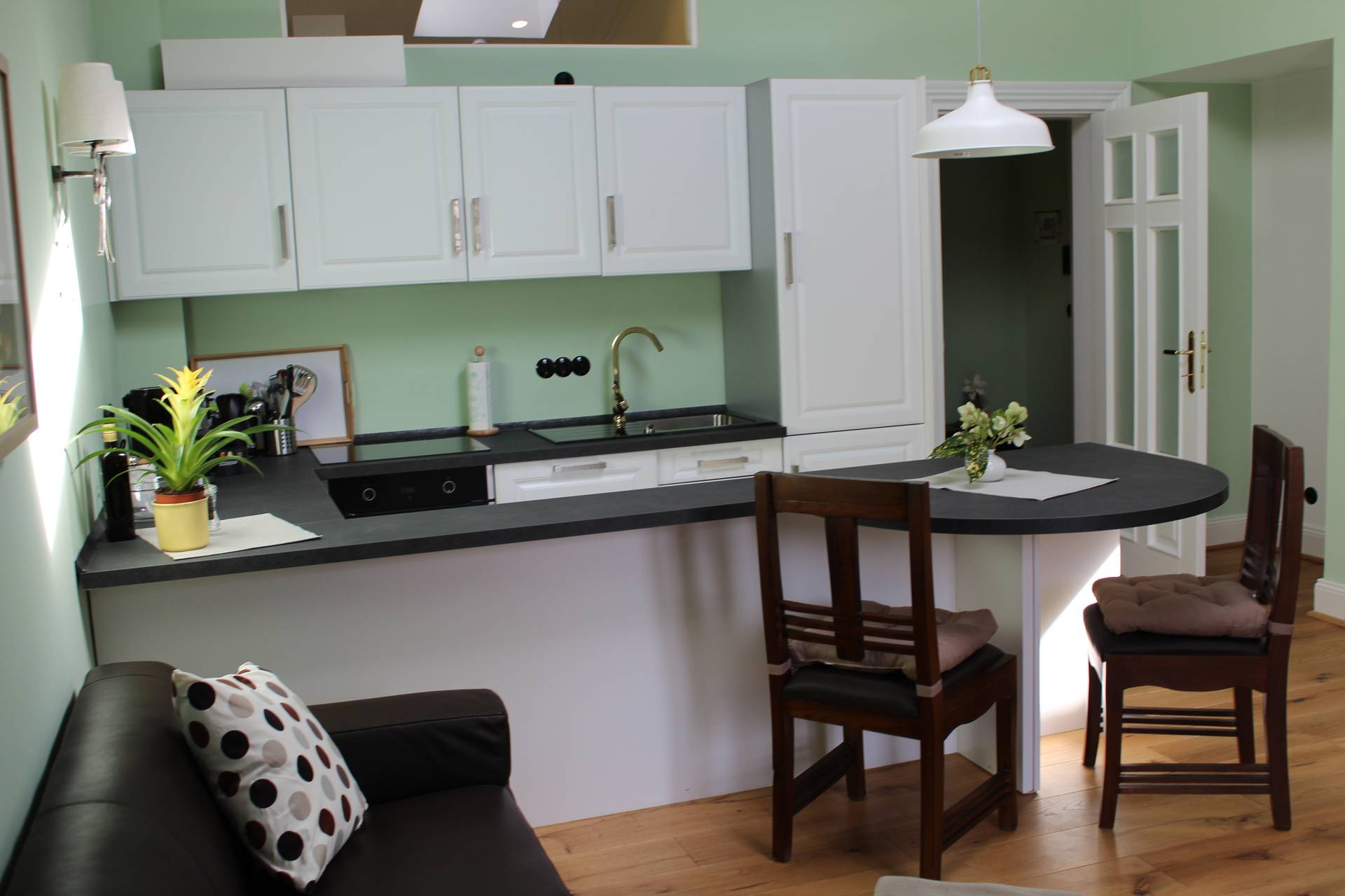 l'appartement d'une pièce "Le Service" pour les domestiques (majordome, interprète, guide touristique, esthéticienne, etc.) - comme à l'époque du Kaiser. L'appartement est accessible par ascenseur.