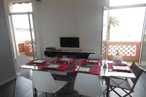 Très beau appartement de standing au troisième étage vue mer avec ascenseur comprenant une cuisine équipée (lave linge, lave vaisselle, four , micro onde, hotte, plaque à induction, frigidaire/congélateur), un salon salle à manger avec TV écran plat , une chambre avec un convertible " rapido " (excellent couchage de 140X190), une mezzanine avec un couchage de 140X190, une salle d'eau avec une grande douche à l'italienne et un WC séparé .