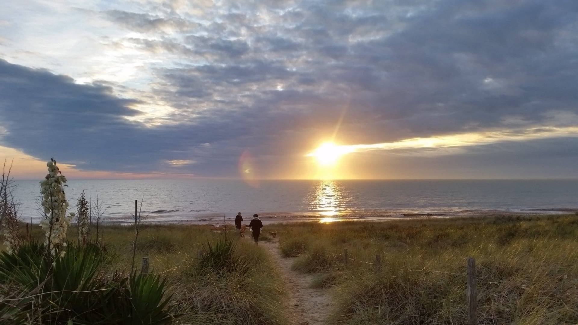 Le sol du jardin est sableux et recouvert d’herbe, typique de la végétation de l’île. Cette herbe, coupée chaque année en mai/juin, peut être haute au printemps et rase l’hiver et l’été, notamment lors qu’il fait chaud.