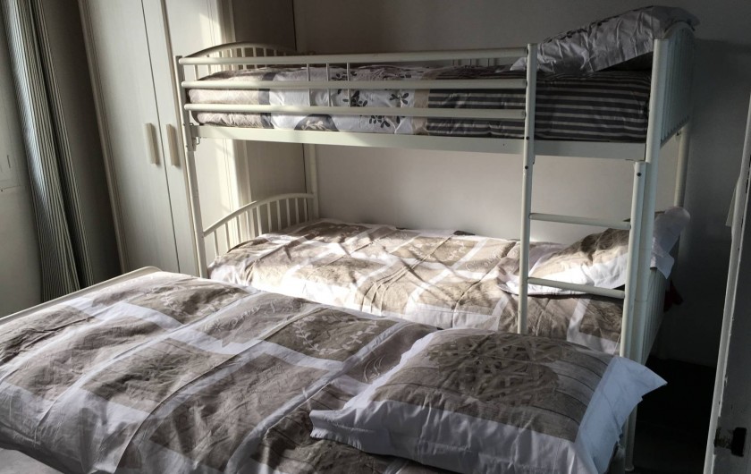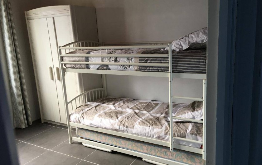 Les possibilités de couchage et le mobilier sont prévus pour 4 à 7 personnes. (1 grand lit dans la chambre sur jardin, 3 lits dont 1 gigogne, dans la chambre côté mer, un canapé lit dans le séjour)