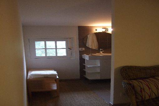 55 m2, entièrement remis à neuf 2 chambres avec 2 salles de bain + canapé lit grande terrasse de 30 m2 avec vue sur la mer 10 mn des plages de bastia et 20 mn des plages magnifiques de st florent situe sur les hauteurs de bastia , à la campagne dans un endroit très calme