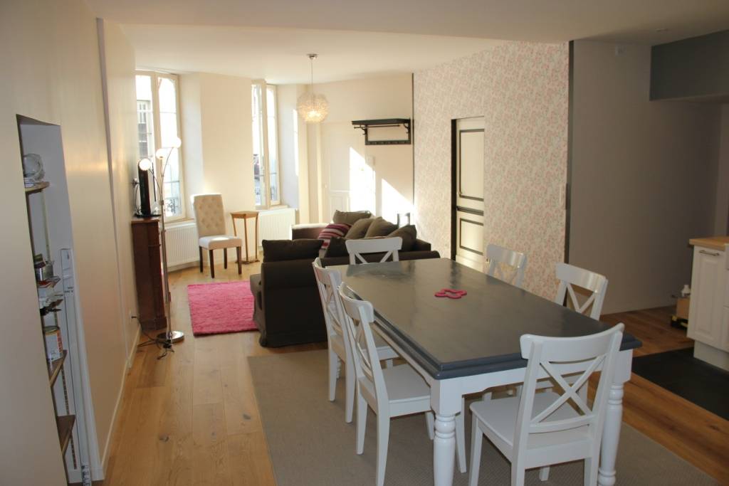 Au rez de chaussée d' une maison de plus de 200 ans, les 80 m2 de cet appartement vous accueilleront de façon confortable. Calme, avec une bonne literie, le gîte est conçu avec goût et est bien équipé ( cuisine moderne, baignoire spa). Le jardin vous permet de profiter d'un écrin de verdure, d'un barbecue, d'une balançoire et de vous reposer.