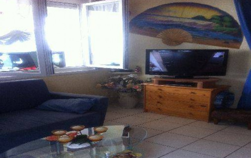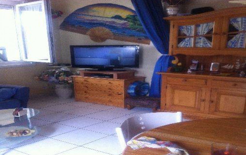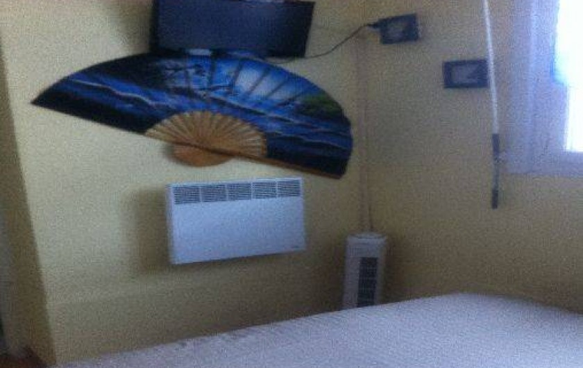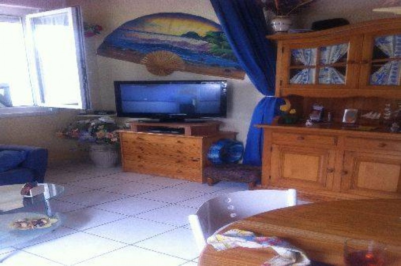 1 chambre comprenant 1 lit de 2 personnes, 1petite télé écran plat, 1 salon salle à manger avec 1 grande télé écran plat, 1 lecteur DVD, 1 banquette 2 personnes, 1 clic-clac 2 couchages, 1 table de salon, petite vue sur la mer,1cuisine,1 salle de bains, 1 WC, 1 parking avec emplacement réservé.