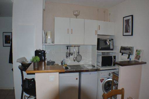 La cuisine possède un équipement complet ( four traditionnel, micro ondes, frigo, lave linge particulièrement silencieux, cafetière grille-pain...)