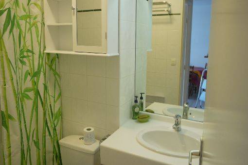 Dans la salle de bain outre le nécessaire de rangement, un sèche cheveux est mis à votre disposition