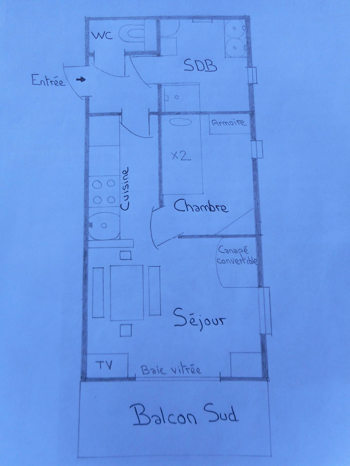 D'une superficie de 38m2, l'appartement avec vue dégagée sur les pistes et la montagne, expo sud, très lumineux avec baie vitrée, confortable, balcon sud, cuisine ouverte sur le séjour, 1 chambre avec 1 lit superposé, 1 grande salle d'eau, local à ski.