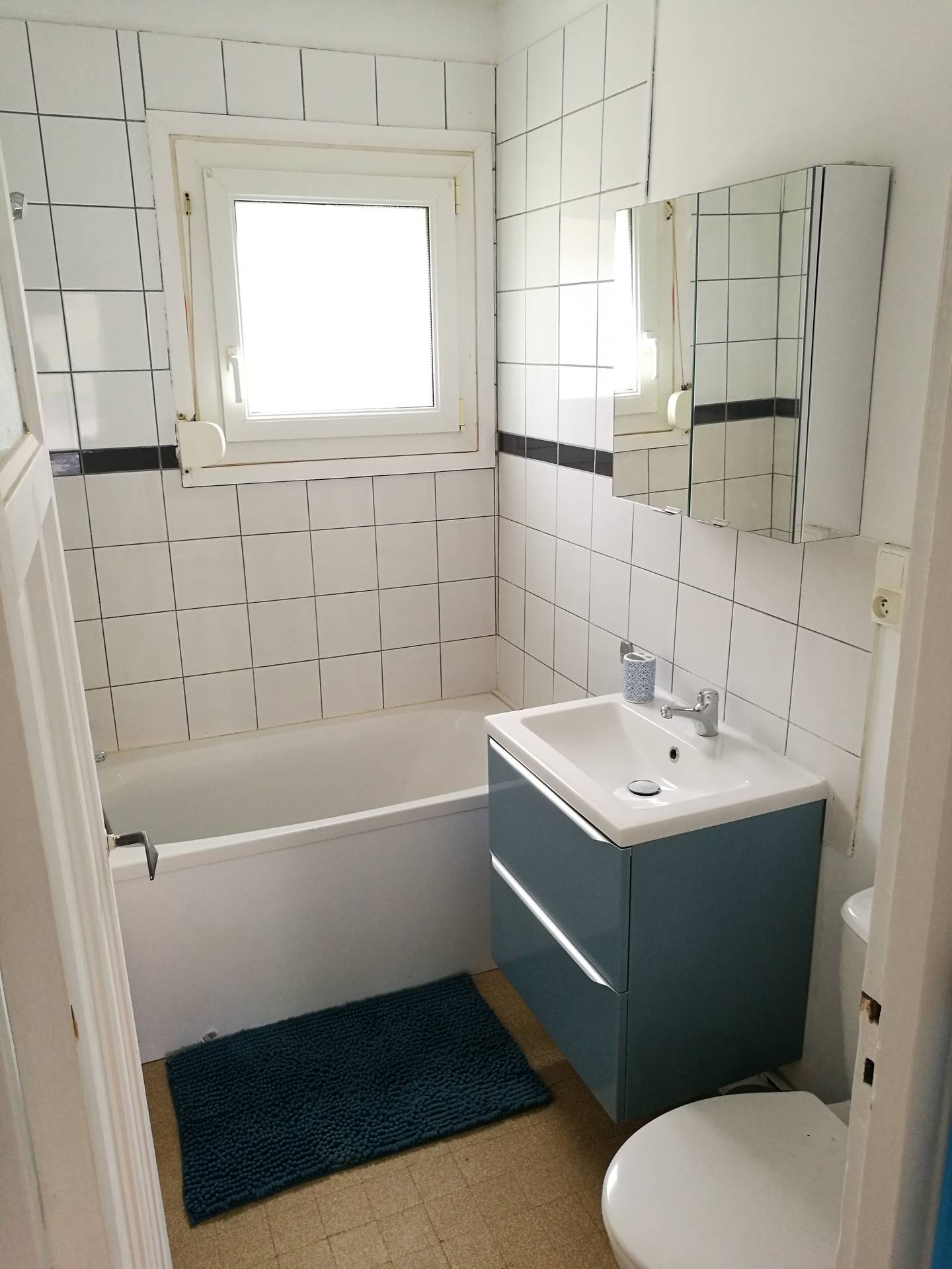 Le logement est équipé d'une cuisine, d'un salon avec canapé convertible, une chambre avec lit double, d'une salle de bain avec baignoire et toilette.