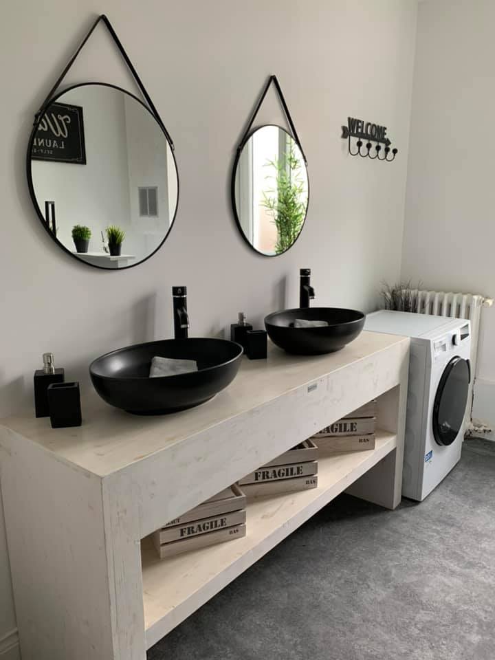 TOUS MES LOGEMENTS SONT EQUIPES : **TV ECRAN PLAT / MACHINE A LAVER/FER A REPASSER/ ÉTENDOIR A LINGE/FOUR/MICRO ONDES/ GRILLE PAIN/2 MACHINES A CAFÉ ( FILTRE+ DOSETTES) / BOUDOIR/ PRESSE AGRUMES/ASPIRATEUR / SEL - POIVRE - HUILE - VINAIGRE - ÉPICES A DISPOSITION