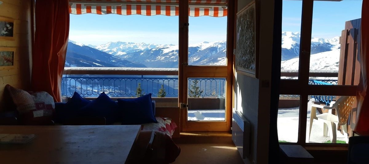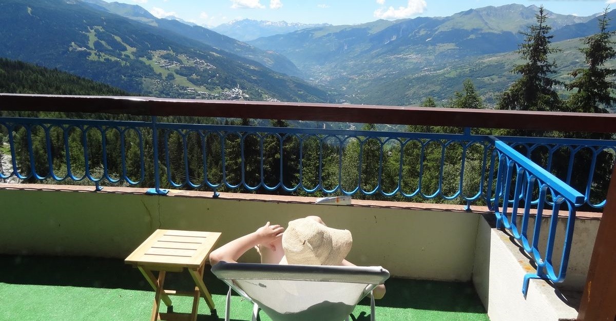 Balcon avec vue panoramique sur la vallée, sans aucun vis-à-vis, exposé ouest (soleil à partir de 12-14h).