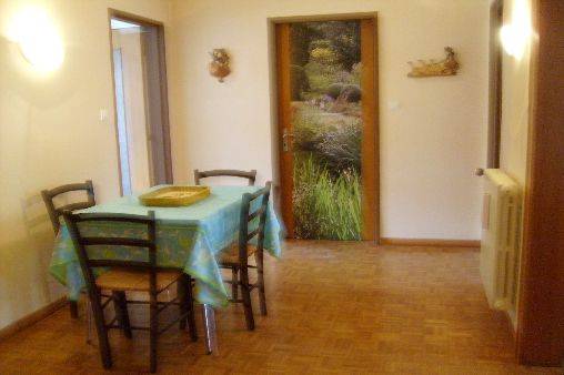 Gîte, entrée indépendante aménagé au 2ième étage de la maison du propriété située en périphérie du village de moyenne montagne proche des sentiers de randonnée et des sites touristiques. Chambre 1 (2 lits 1p), Chambre 2 (1 lit 2p), Chambre 3 (1 lit 1p), salon, espace repas, cuisine (Micro onde, congélateur), salle de bain, wc séparé. Balcon (10 m x 1.20 m: tables, chaises). Chauffage central et Taxe de séjour inclus. Mobilier de jardin, parking dans cour.