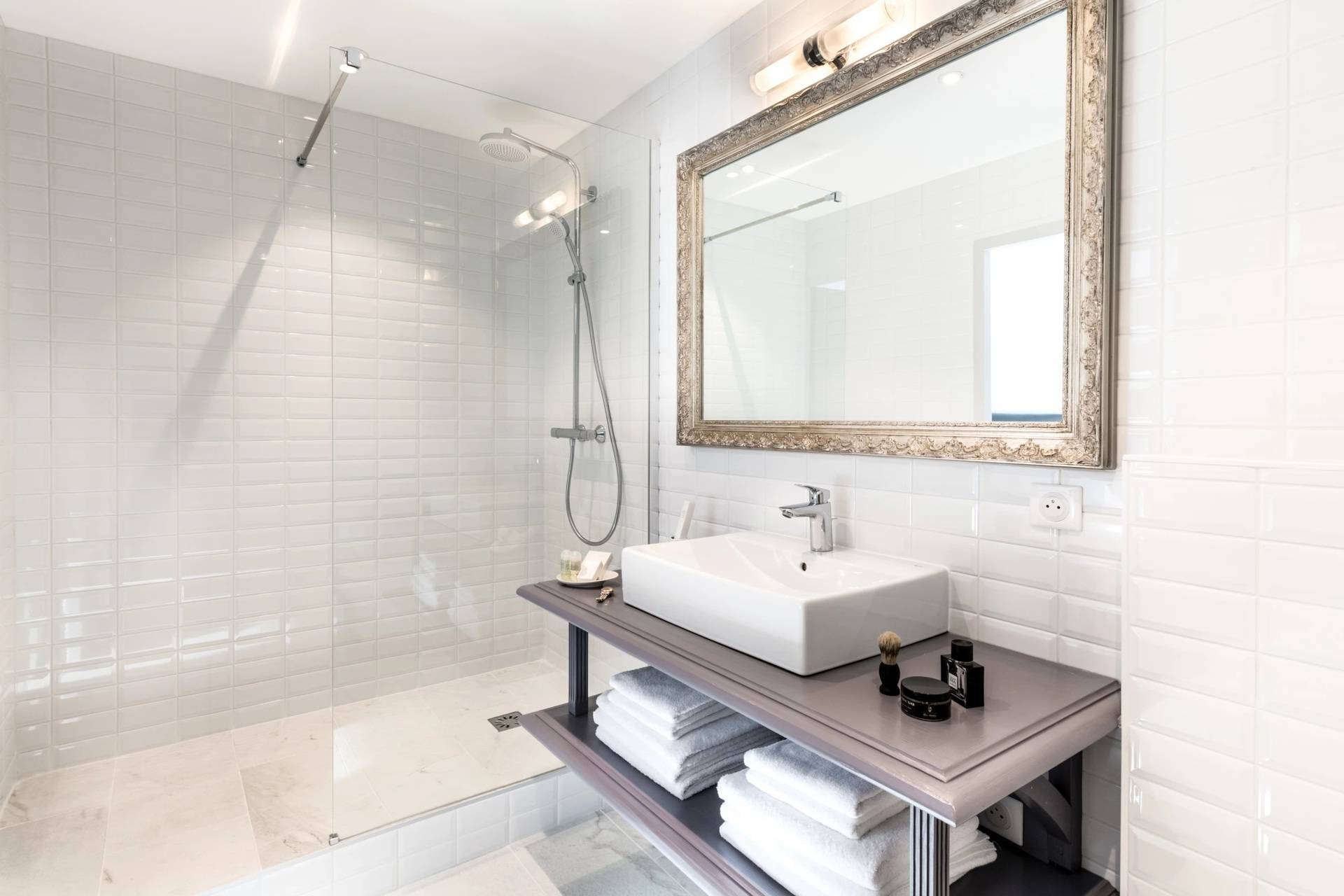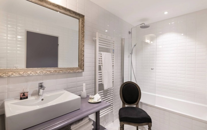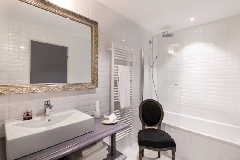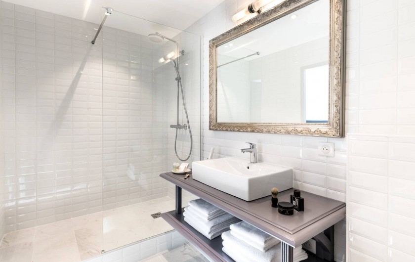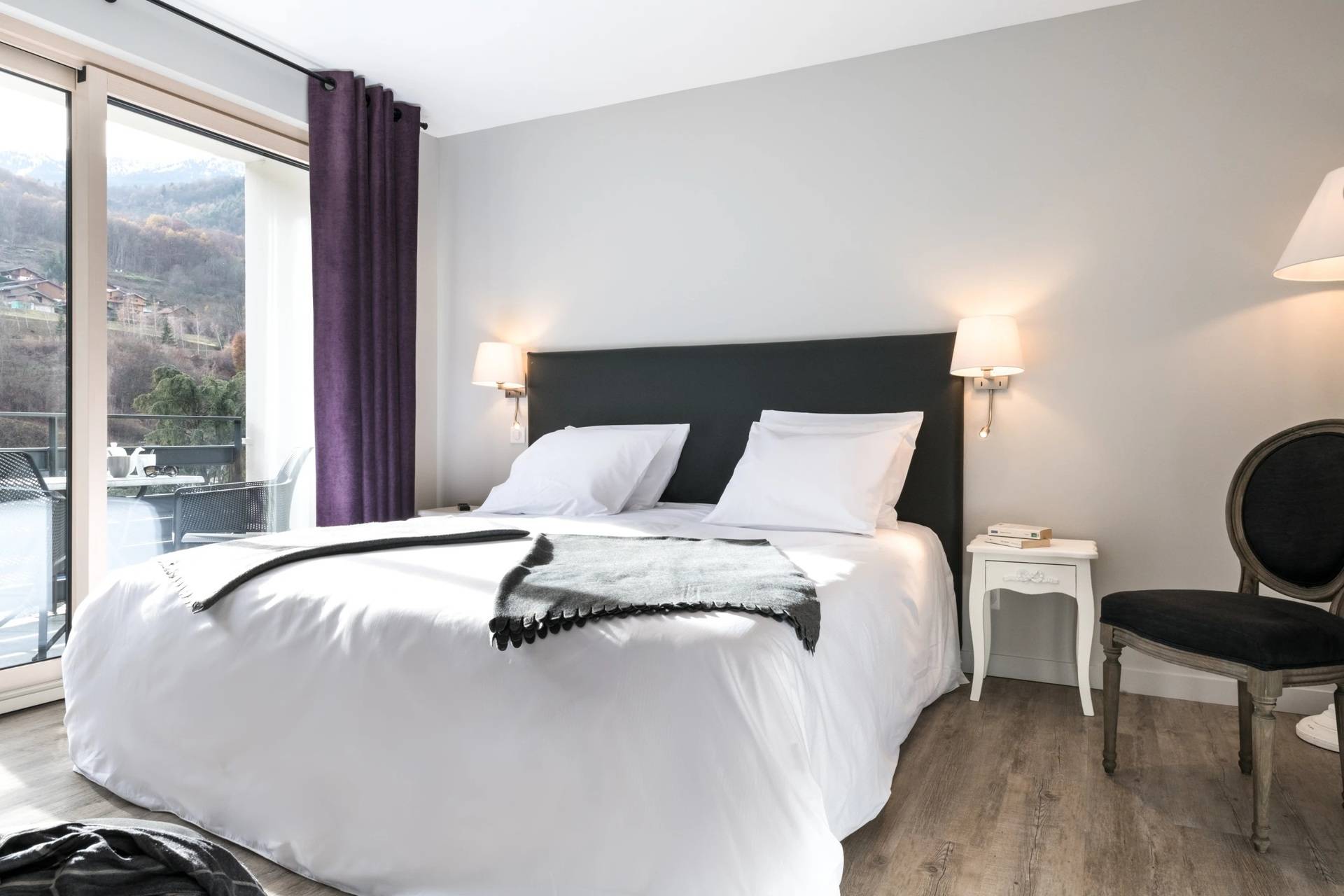 Une suite avec sa terrasse exposée Sud ; comprenant un lit double 180 x 200 cm composé de deux lits 90 x 200 cm vous laissant le choix de rapprocher ou non les lits. TV écran plat, une salle de douche à l’italienne, avec toilettes privatives