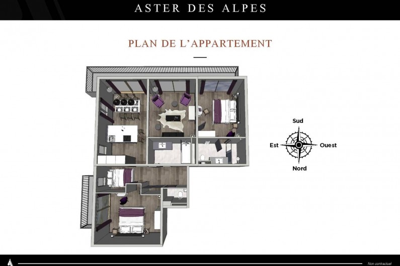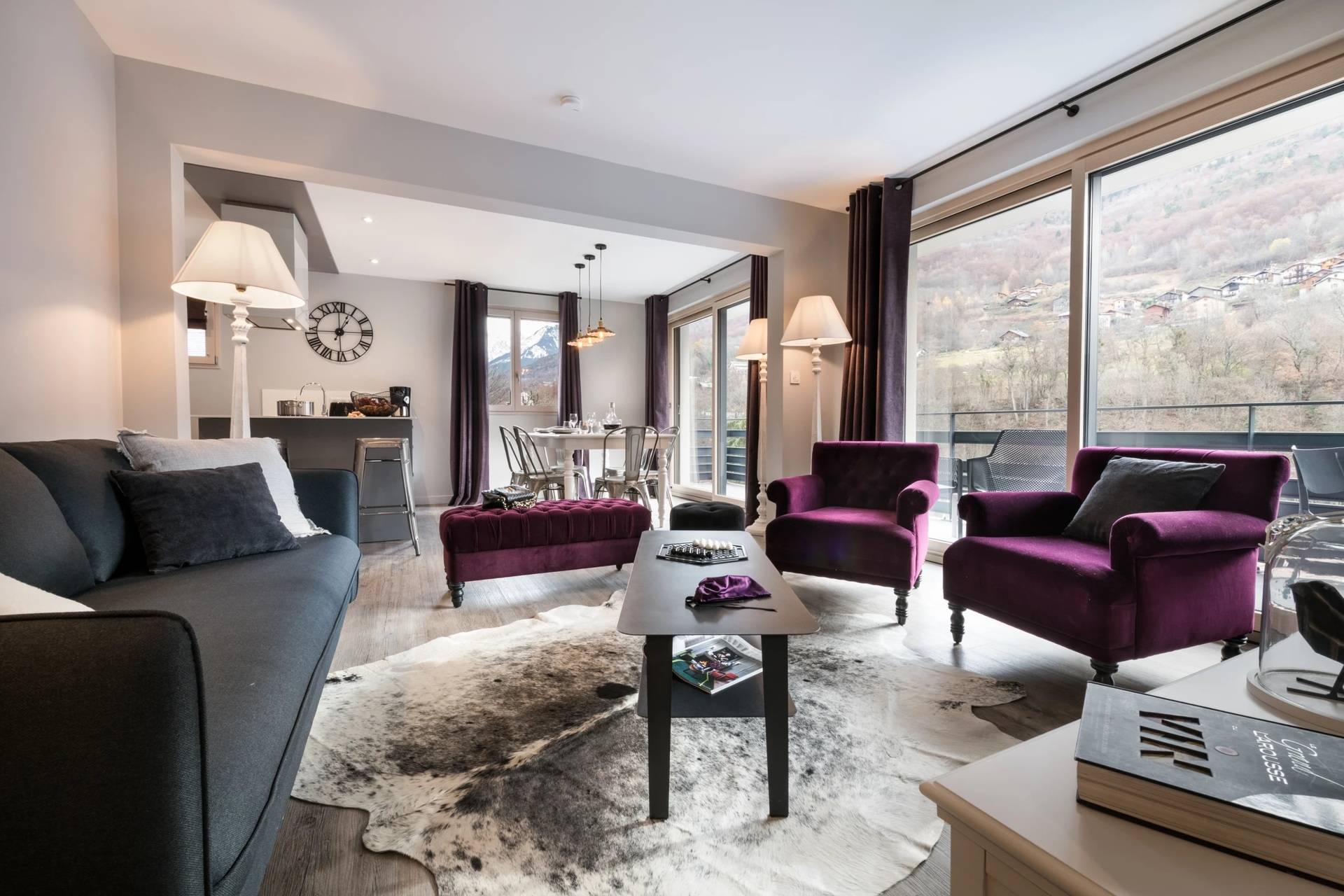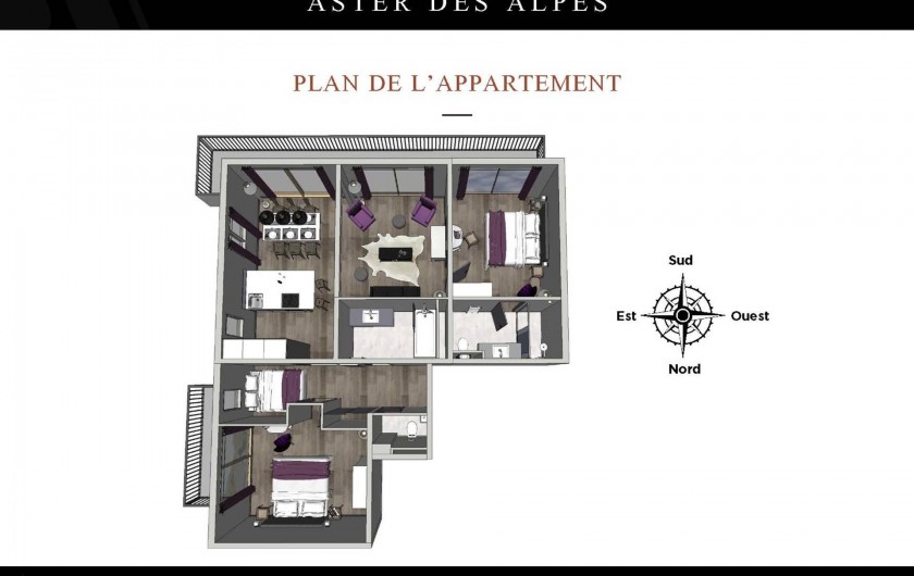 L’Aster des Alpes est situé au 2ème étage avec ascenseur de la Résidence ALTICIMES. La décoration intérieure moderne et chaleureuse est inspirée de la couleur Mauve de la fleur de montagne du même nom.