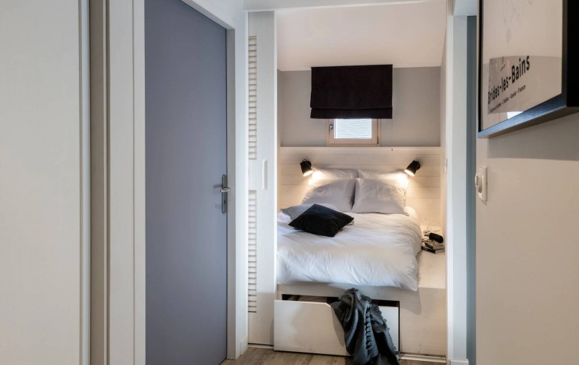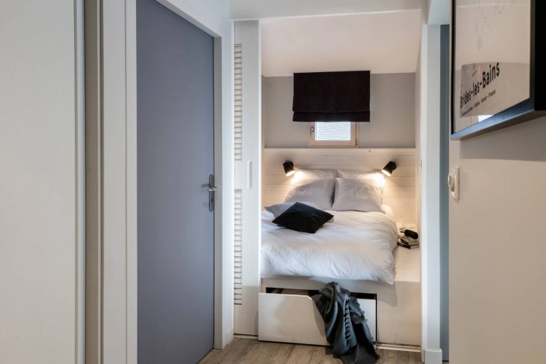 Une entrée, un coin montagne fermé avec fenêtre équipé,d’un lit double 140 x 200 cm
