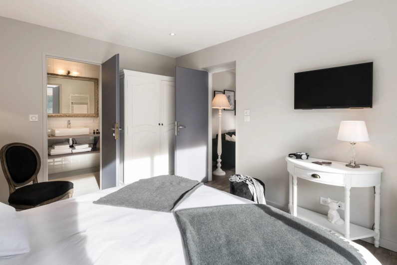 comprenant un lit double 180 x 200 cm composé de deux lits 90 x 200 cm vous laissant le choix de rapprocher ou non les lits, TV écran plat