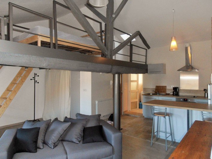 - une grande pièce à vivre de 35 m2 avec canapé - lit (2ème couchage possible), chaîne hi-fi et téléviseur DVD