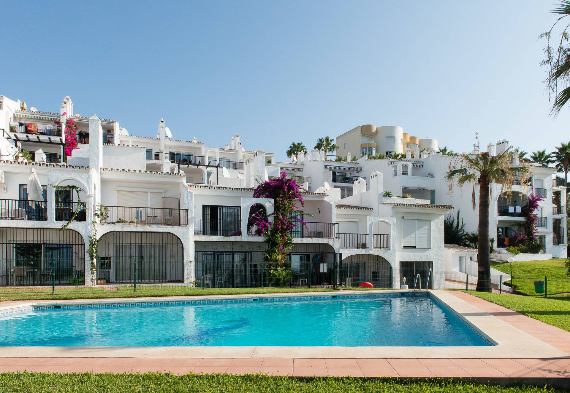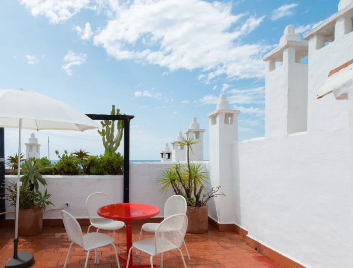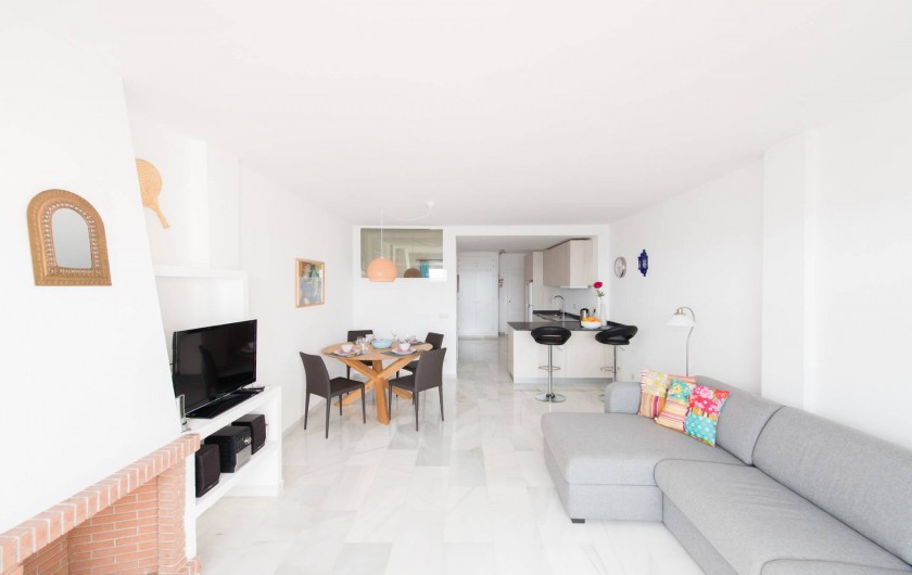 L'appartement est situé au calme, dans un bâtiment entouré d'un beau jardin et une piscine juste à côté de la mer. Il y a une passerelle en bois sur la plage qui va de nombreux kilomètres vers la droite (vers le village de pêche agréable de Cabopino) et à gauche (par exemple à la belle plage de La Cala avec ses plages de sable blanc)