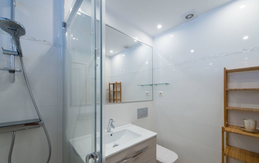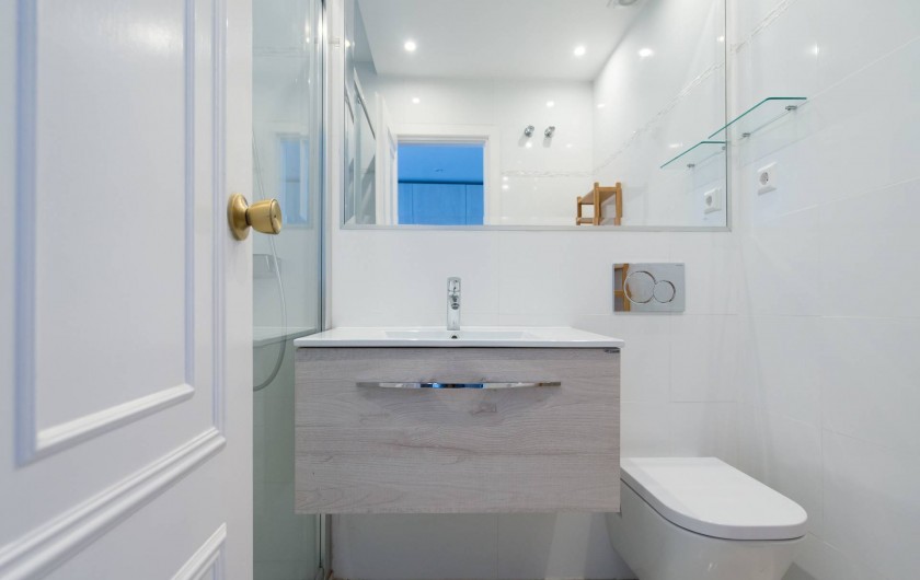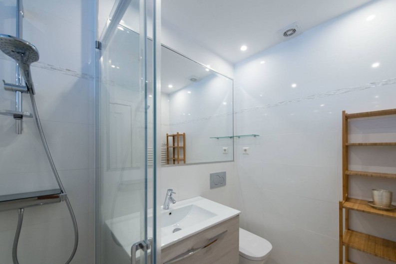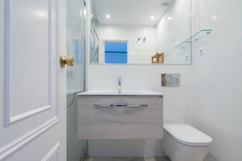 Aussi la salle de bains a été entièrement rénové: douche spacieuse, de nouvelles toilettes etc. Une fonctionnalité intéressante: vous pouvez regarder la mer en prenant votre douche, depuis que nous avons une fenêtre à côté de la douche (pour ceux qui préfèrent la vie privée, nous mettons un volet roulant ...).