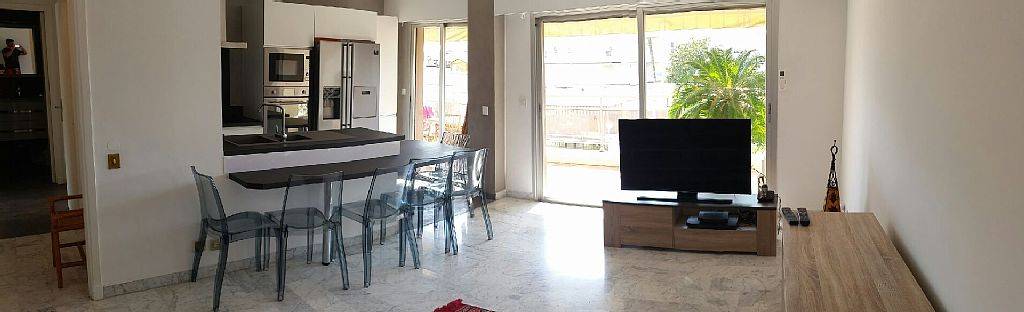 Appartement entièrement refait à neuf - T2 de 51 m2 avec terrasse de 25 m2 équipée d'une table et de bains de soleil - Store banne électrique. Garage en sous-sol. Cuisine américaine neuve ameublement et électro-ménager (frigo US, lave-vaisselle, lave-linge, plaques induction, micro-ondes). Séjour avec écran plat. Internet et WIFI. Une chambre de 12 m2 avec dressing. SDB avec douche italienne et béton ciré. WC séparé. Appartement entièrement climatisé au 4ème étage avec ascenseur. 10 minutes à pied de la croisette et des ses plages. 15 minutes de la rue d'Antibes. Vue … dégagée sans vis-à-vis. Proximité tous commerces Lire moins Lire la suite