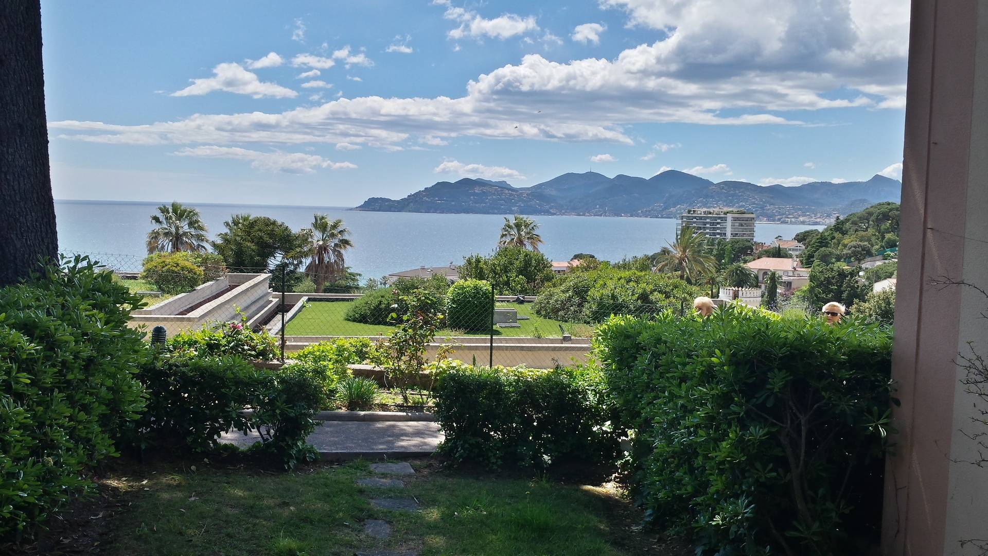 L'appartement de 3 pièces 47m² se situe en REZ de JARDIN avec TERRASSE COUVERTE de 10m² + pelouse de 20m² avec vue dégagée de la baie de CANNES du MASSIF de l'ESTEREL et la Ville de THéOULE.