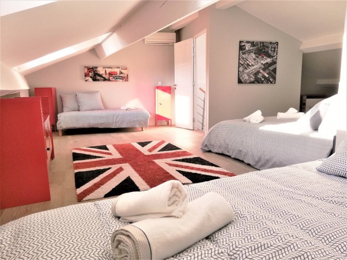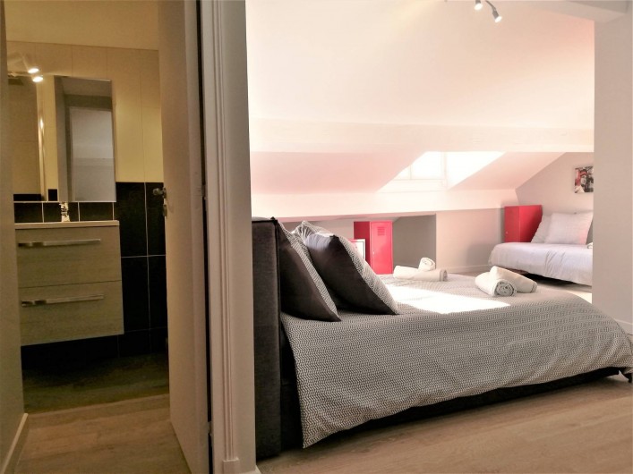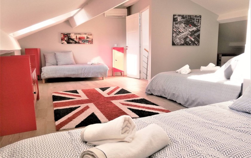 Meynadier : 10 couchages max - Grand duplex composé d'une cuisine ouverte sur séjour, une chambre en suite (lit double), une chambre lit double, une chambre avec 2 lits simples, 2 salle d'eau, 2 toilettes indépendant. A l'étage, grande chambre mansardée composée d'un lit double, et 2 lits simples, salle d'eau + toilette. WIFI. Tarif Ménage 120€. Linge de maison : 25€/pers.